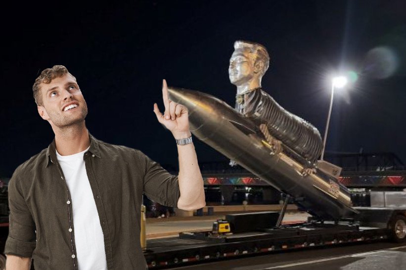 Kevin i Michelle Stone udowodnili, że mają gest, budując miliarderowi pomnik trwalszy niż ze spiżu i dostarczając go pod siedzibę Tesli. Jest to efektowne połączenie głowy Muska z tułowiem kozła, siedzącego okrakiem na rakiecie.