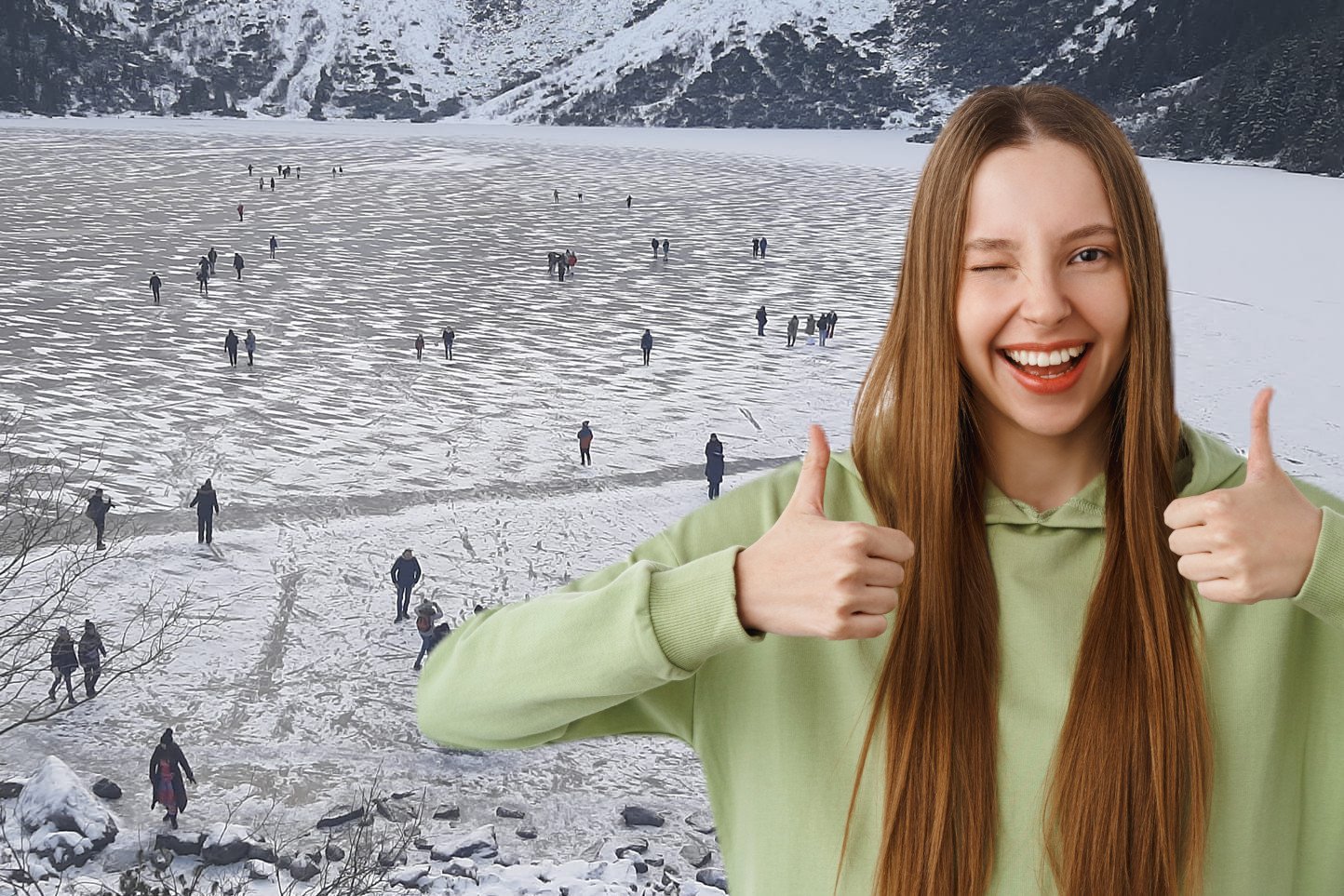 Malownicze zdjęcie z inscenizacji powiedzenia "głupi ma zawsze szczęście" pokazał pan Leszek z grupy "Tatromaniacy" na Facebooku. Co ważne, lód na jeziorze się nie załamał i żaden z turystów nie utonął. Tym razem.