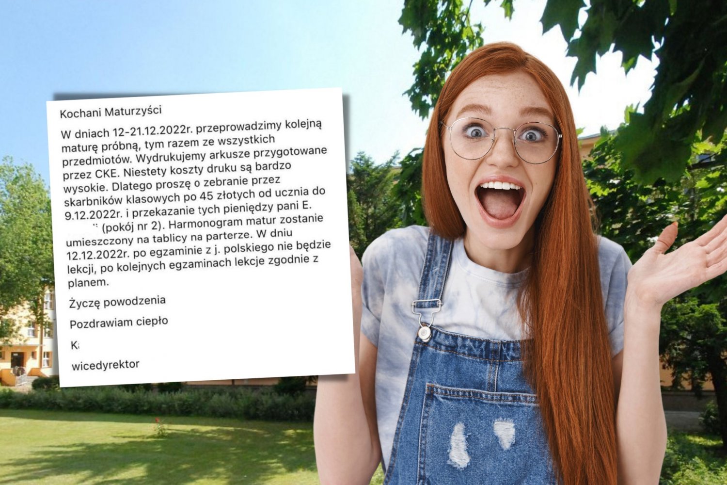 Jak wyjaśniła wicedyrektor liceum w wiadomości do Kochanych Maturzystów, opłata wynika z "bardzo wysokich kosztów druku arkuszy przygotowanych przez CKE".