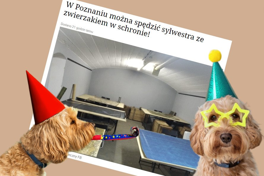 W tym roku nie trzeba oglądać Sylwestra Marzeń w telewizji, bo taką imprezę (ale lepszą) organizuje Grunwaldzki Park Społeczny w poznańskim schronie przy ulicy Smardzewskiej. Można do niego zabrać swoje zwierzęta domowe i w końcu przeżyć miłego i spokojnego sylwestra, podczas którego twój piesek jest szczęśliwy, więc i ty jesteś.