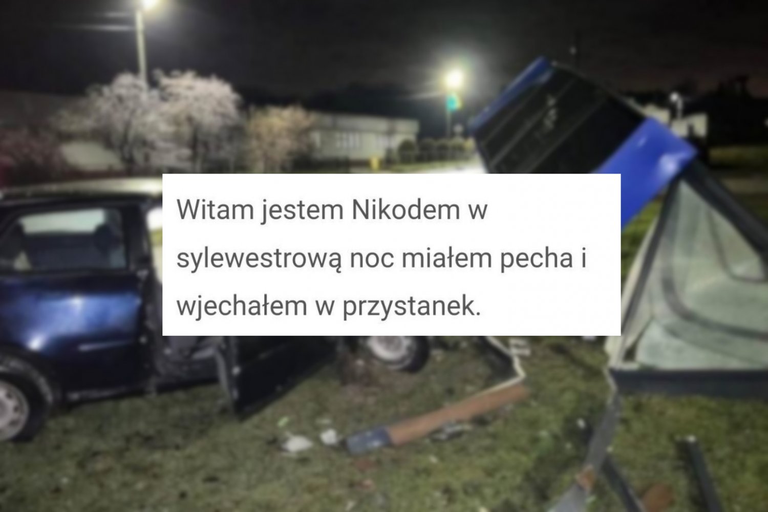 I moglibyśmy się z tym zgodzić, jeżeli 16-latek dopisałby, że ma tego pecha, bo jest idiotą, który prowadził samochód po alkoholu. Wartość zniszczonej wiaty to 65 tysięcy złotych. To tzw. "inteligentna" wiata, którą gmina dostała w nagrodę w ogólnopolskim konkursie „Najbardziej Innowacyjny Energetycznie Samorząd”. Tym razem w wypadku nikt nie zginął, ale i kierowca, i jego pasażerka, doznali obrażeń.