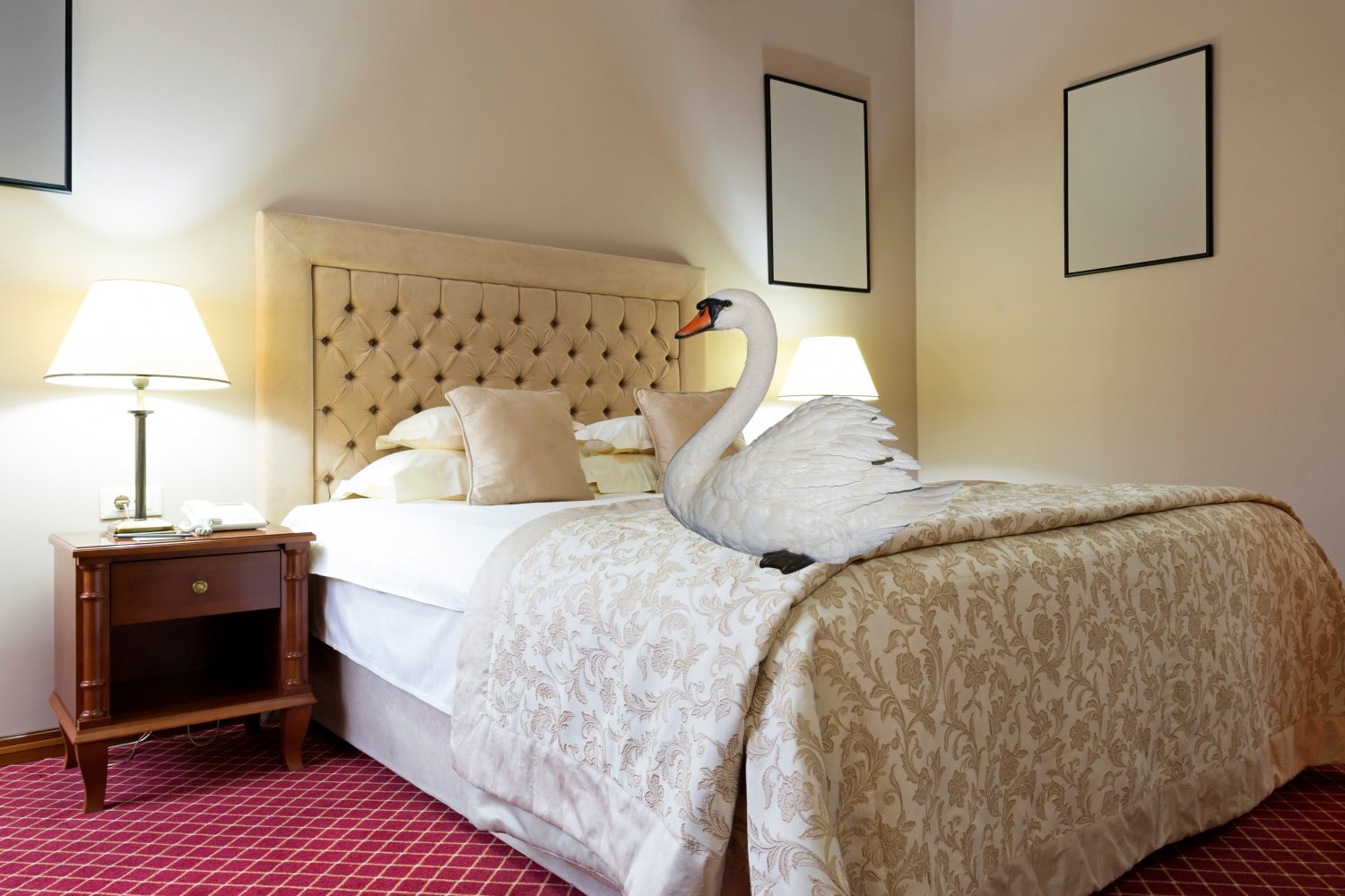 Łabędzie pozostawiane gościom w pokojach mają rozpiętość skrzydeł sięgającą nawet 1,5 metra, gęste pióra podbite puchem i okazałe dzioby. Zdaniem gości, wystarczy tylko raz znaleźć w posprzątanym pokoju prawdziwego łabędzia, a już nigdy więcej nikt nie zechce skorzystać z podróbki.