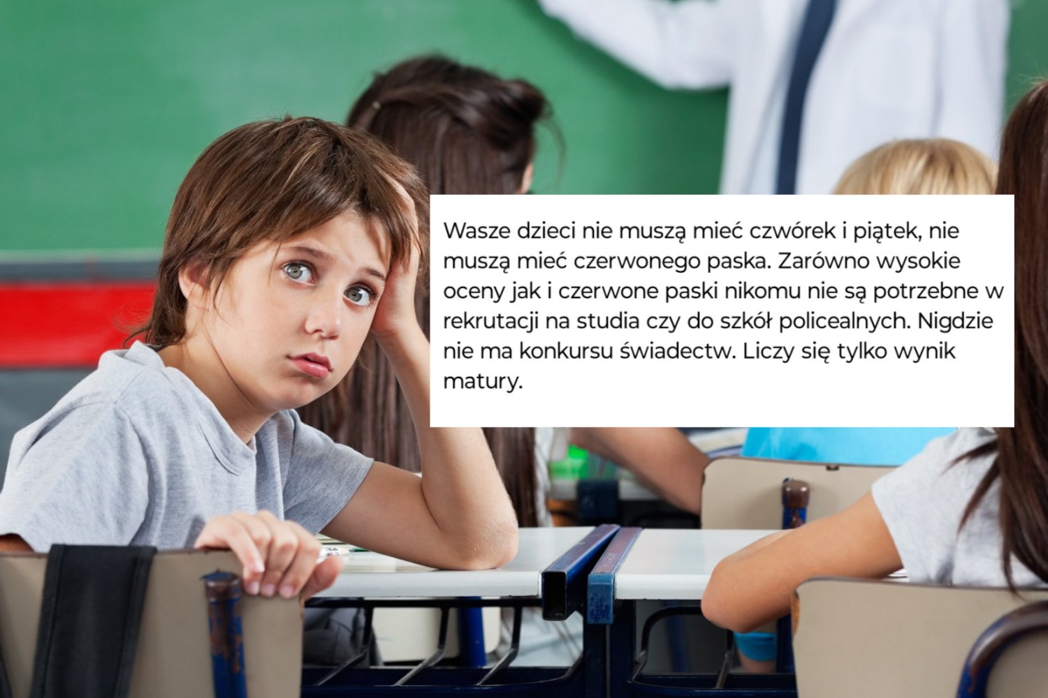 Świadectwa z czerwonym paskiem są ważne, bo generują lajki na Fejsie rodziców. A gdy uczennica wróci do domu i pochwali się, że dostała czwórkę z matematyki, to warto zmobilizować ją pytaniem "a czemu nie piątkę?". A może to wszystko szkodliwe bzdury? Tak wynikałoby z listu do rodziców, który napisała Elżbieta Gęsina, dyrektorka liceum z Warszawy.