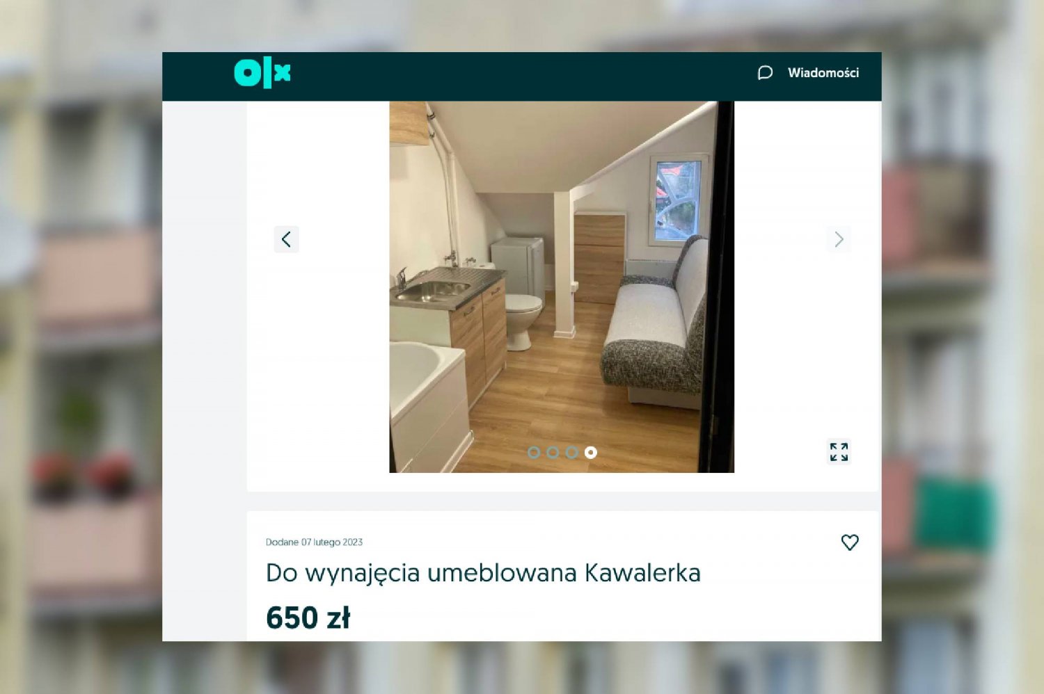 Gratka dla fanów życia w warunkach upadlających człowieka. Za jedyne 650 złotych plus 100 złotych czynszu plus opłatę za prąd można wynająć w pełni umeblowaną i wyposażoną kawalerkę o powierzchni 7 m kw. Dodatkowym atutem miejsca jest widok na muszlę klozetową, która znajduje się na wyciągnięcie ręki od składanej kanapy.