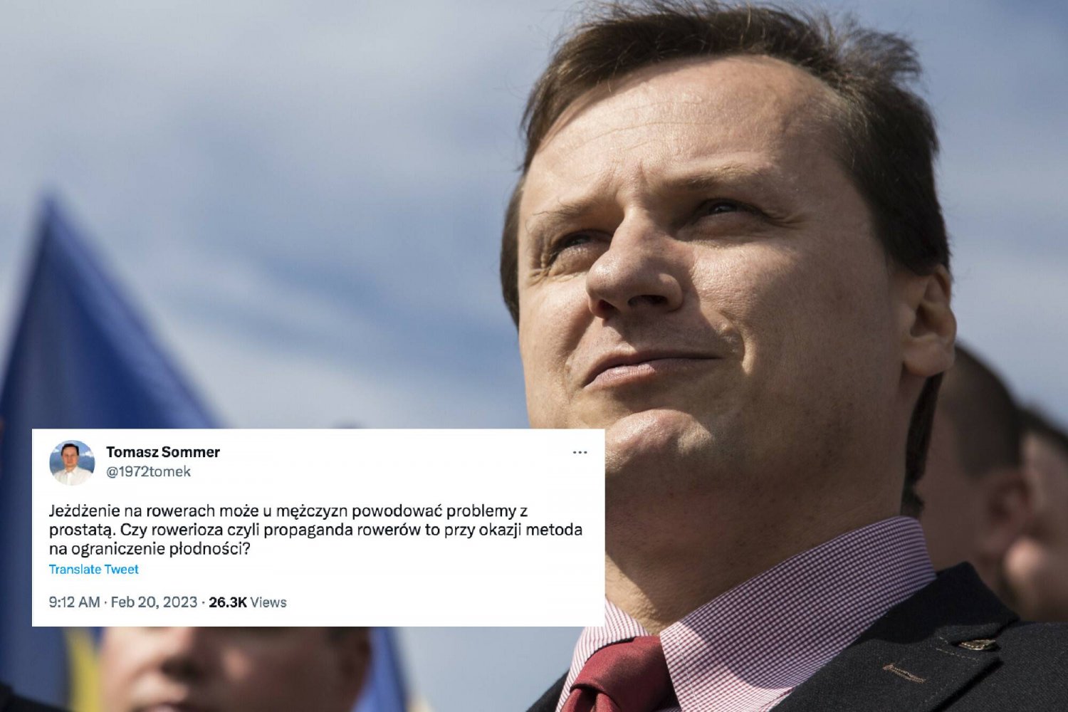 "Jeżdżenie na rowerach może u mężczyzn powodować problemy z prostatą. Czy rowerioza czyli propaganda rowerów to przy okazji metoda na ograniczenie płodności?" – pyta Tomasz Sommer.