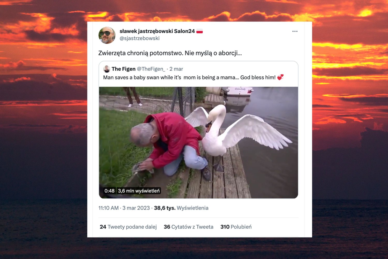 Właściciel serwisu Salon24.pl zaprezentował światu łabędzia, który według niego jest przykładem tego, jak zwierzęta dbają o swoje młode. I nie myślą o aborcji.