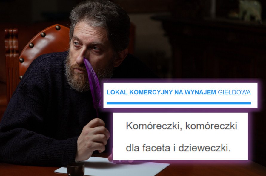 Nadzieja na odrodzenie polskiej poezji! Nowym Adamem Mickiewiczem okazał się tajemniczy wieszcz, który opublikował swoją twórczość pod pretekstem wynajmu komórek lokatorskich w Warszawie. Ale my już swoje wiemy. Pewnie znudziło mu się upychanie tekstów do szuflady i zamarzył, by w końcu tchnąć ducha w skamieniały od nużąco-informacyjnej frazy naród. Oczarował potencjalnych klientów wierszem i zbudował pomnik trwalszy niż ze spiżu.
