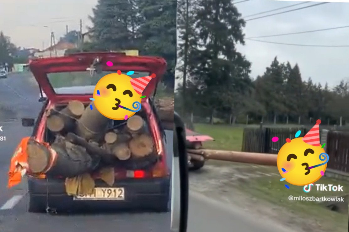 Film z tej wyprawy pełnej przygód pojawił się na TikToku. Z szacunków wynika, że drzewo miało ok. 9 metrów i było tak ciężkie, że tył auta mocno osiadł. Nie przeszkadzało to kierowcy w pokazaniu drągowi trochę świata, nim skończy w kominku.