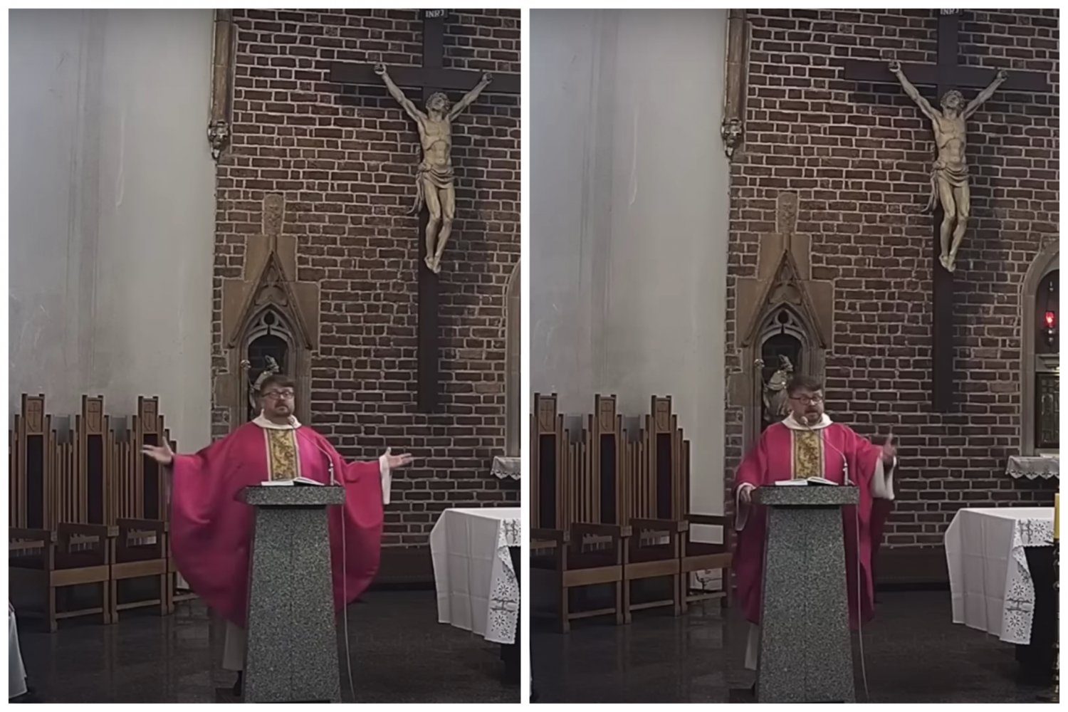 W trakcie mszy zebrani mogli poznać stanowisko duchownego, które wyraźnie stoi w kontrze do aktualnej postawy polskiego Kościoła w sprawie tuszowania pedofilii przez Jana Pawła II.