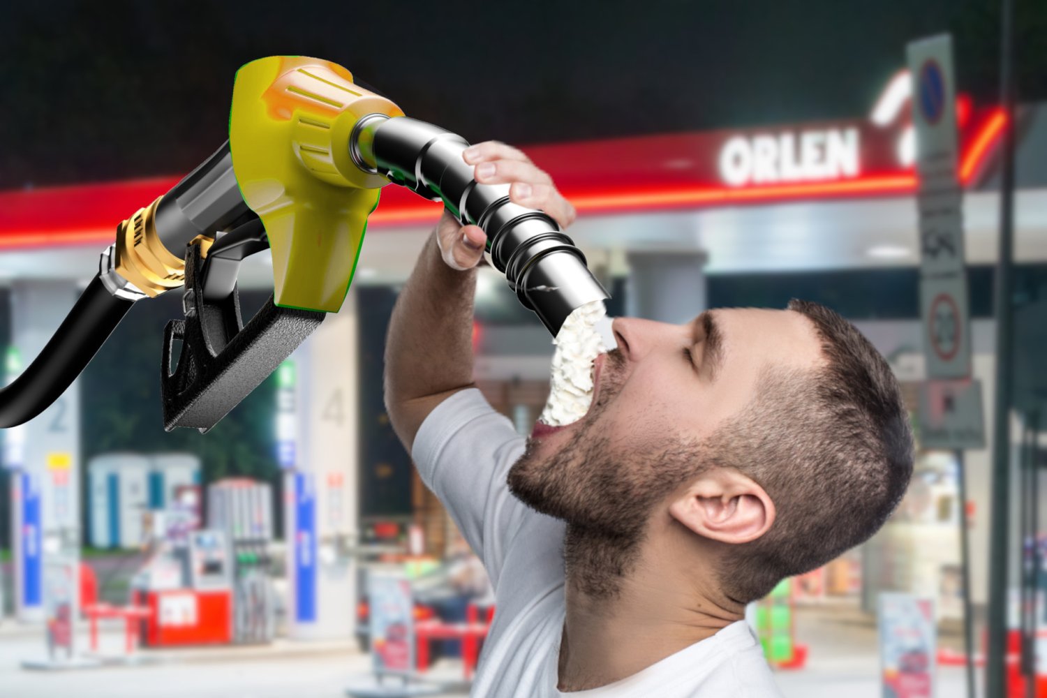 Wystarczy włożyć wąż paliwowy do ust, zablokować przepływ, a dystrybutor zatankuje użytkownika do pełna tak, by nie przelać układu pokarmowego.
