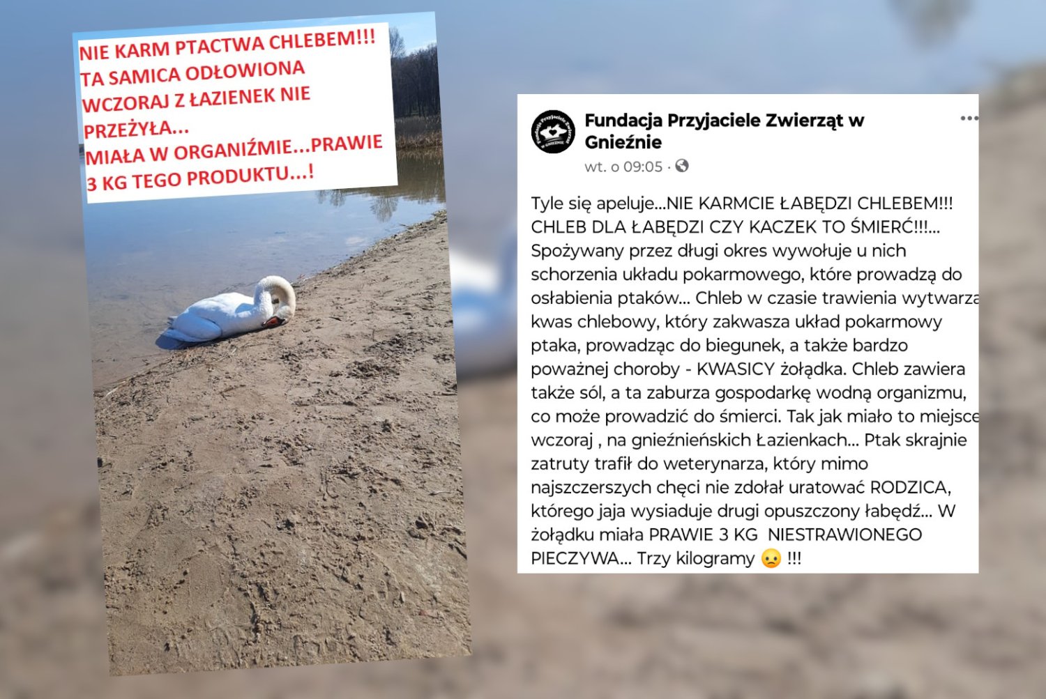 Fundacja Przyjaciele Zwierząt w Gnieźnie wystosowała ważny apel. Prosi, by nie dokarmiać łabędzi i kaczek pieczywem. I ma ku temu ważny powód.