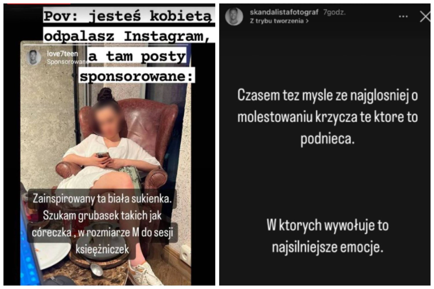 Na nowym profilu fotografa nie znaleźliśmy już takich treści. Jest za to post sponsorowany z informacją, że ten sam fotograf szuka "grubasek w rozmiarze M, takich jak córeczka, by zmienić je w księżniczki".