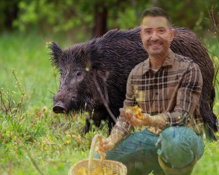 Tego typu mina może zmylić myśliwych, którzy pomylą twarz grzybiarza z długim ryjem dzika.