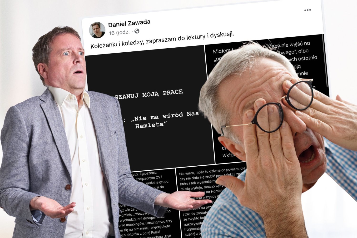 Ta dzisiejsza młodzież nie ma żadnego poszanowania dla świętości! Tym razem udowodnił to Daniel Zawada, aktor wyraźnie młodszego pokolenia, któremu nie spodobał się proces castingowy do spektaklu "Hamlet". I, jak to młodzian, swoimi przemyśleniami podzielił się w międzysieci, bo tak już mają ci niedojrzali millenialsi.