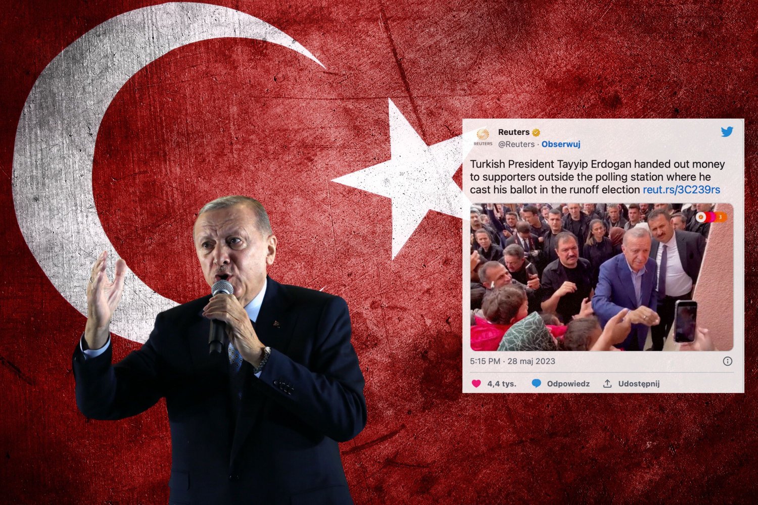 Prezydent Erdogan wygrał w drugiej turze wyborów prezydenckich i będzie głową państwa przez trzecią kadencję. Gratulacje płyną do niego z całego świata m.in. od prezydenta Bidena czy Macrona. Z wynikami nie zgadza się oponent Erdogana – Kemal Kılıçdaroğlu. Opozycyjny polityk zarzucił prezydentowi autorytarne rządy i „utrudnianie wyborów”. Jednocześnie podziękował 25 milionom rodaków, którzy na niego zagłosowali. W sieci pojawiają się nagrania, na którym prezydent Turcji w dość bezpośredni sposób namawia do głosowania na siebie – po prostu rozdaje pieniądze wyborcom.