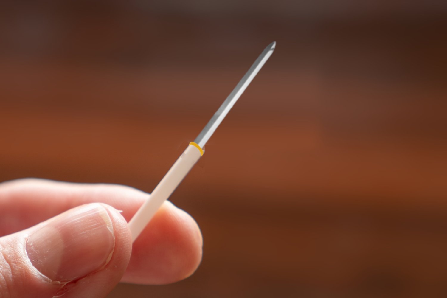 Ostrze wykonane ze stali chirurgicznej zapewnia niemal bezbolesną i szybką perforację przy zachowaniu całkiem wysokich standardów higieny i dość wysokich bezpieczeństwa. Delikatne gumowe zgrubienie przy końcu ostrza w większości przypadków nie pozwoli na zbyt głębokie włożenie patyczka i zapobiegnie niechcianemu nakłuciu mózgu.