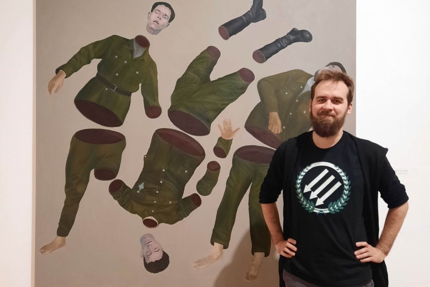 "To, czego można było tam doświadczyć, to – poza dyskusyjnym jakościowo malarstwem – apoteoza zbrodniarzy, żarty z nazistowskiej przemocy, podłe wymieszanie bohaterów ze zwykłymi bydlakami i mordercami w celu legitymizacji działalności tych drugich. Podczas mojego oprowadzania nie omieszkałem wspomnieć o moich obawach wynikających z prezentowania tego typu narracji, cytowałem artystę i dosyć jednoznacznie wyrażałem swoje zdanie. Robiłem to w Zachęcie przez kilka lat i za moją szczerość i odwagę w wyrażaniu opinii (czasami trudnych i, hm, kontrowersyjnych?) byłem raczej doceniany przez osoby, z którymi pracowałem, i przez publiczność. Tym razem było inaczej".