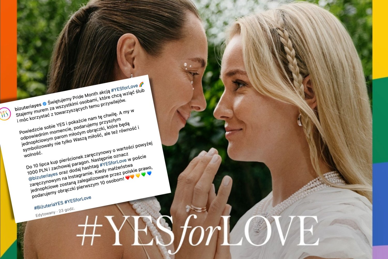 Co za wspaniały gest! Jak czytamy w poście producenta biżuterii, marka YES "staje murem za wszystkimi osobami, które chcą wziąć ślub i móc korzystać z towarzyszących temu przywilejów".