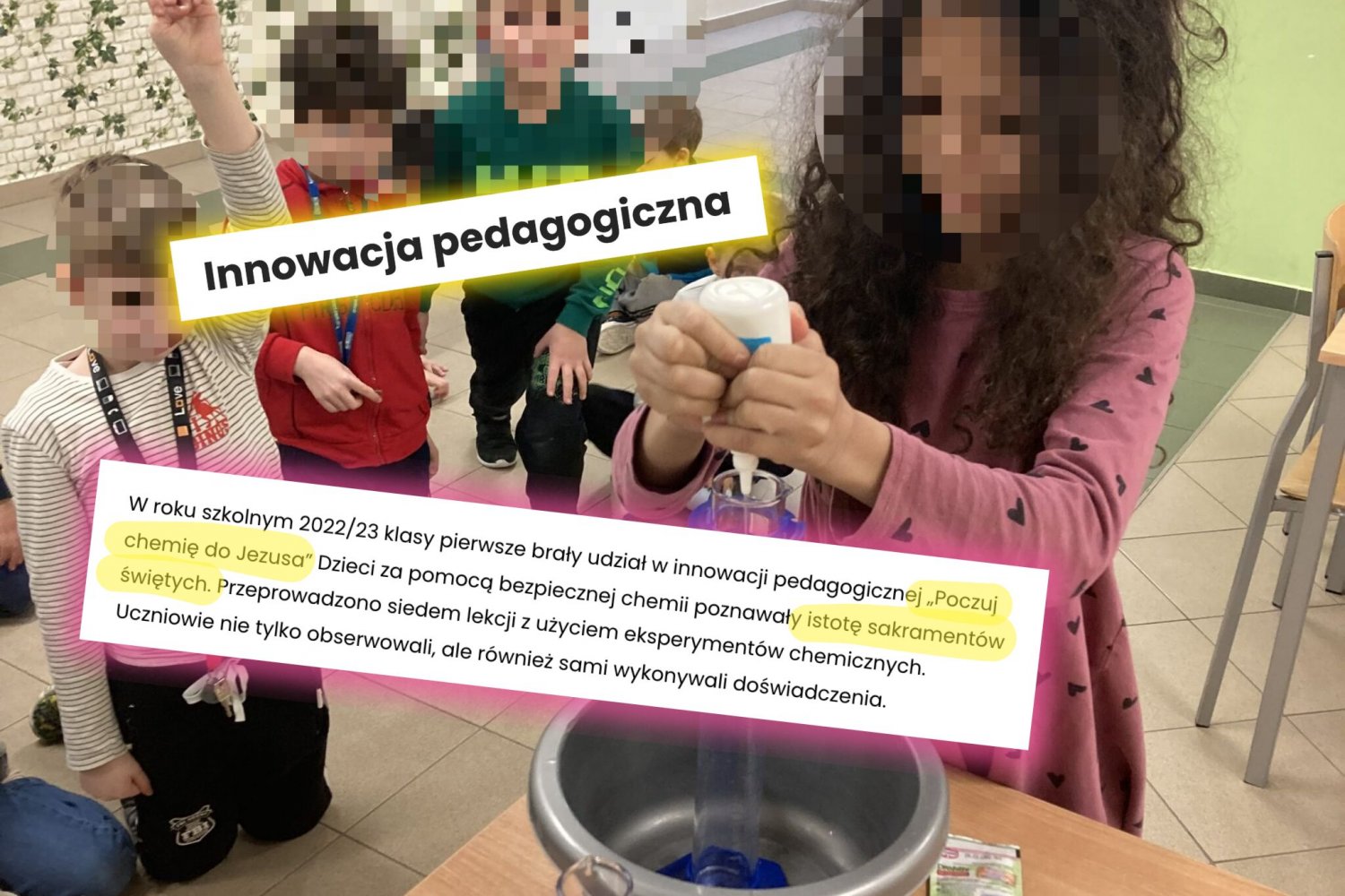 "W roku szkolnym 2022/23 klasy pierwsze brały udział w innowacji pedagogicznej "Poczuj chemię do Jezusa"" – czytamy w komunikacie SP 35. – "Dzieci za pomocą bezpiecznej chemii poznawały istotę sakramentów świętych".