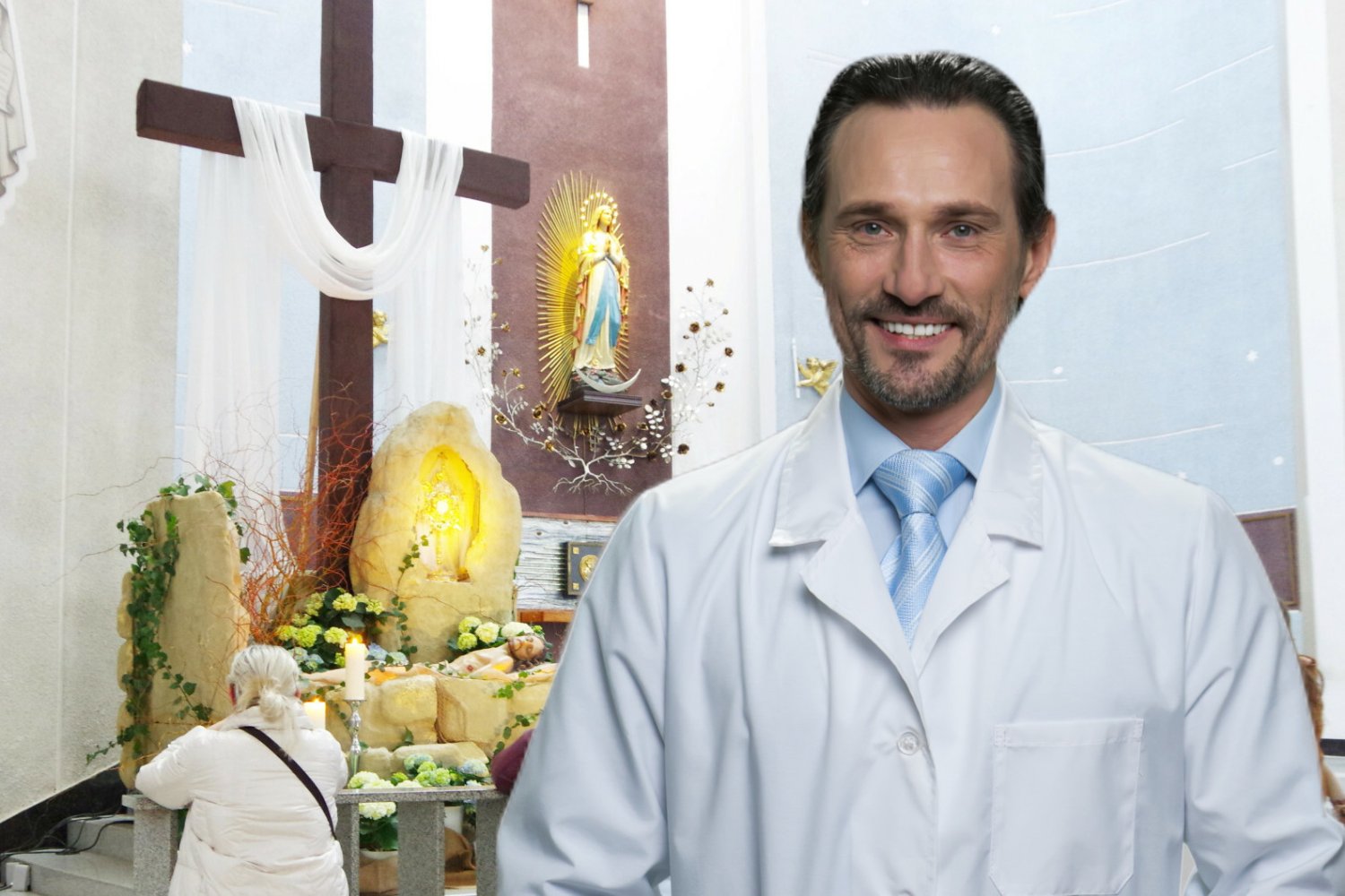 - Wystarczy przyjść, wyznać grzechy i uklęknąć przed monstrancją - zapewnia pacjentki dyrektor szpitala. - Zabieg najlepiej wykonać przed ewentualną śmiercią.