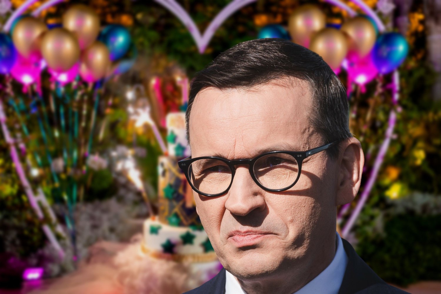 Miało być tak pięknie. Z okazji swojego święta Mateusz Morawiecki nadmuchał setki baloników, przygotował konfetti i piniatę w kształcie Donalda Tuska.
