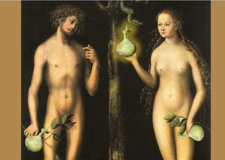 W mediach zawrzało. Amerykańska korporacja usilnie próbuje zastrzec prawa intelektualne do wizerunku jabłka. Autorzy Księgi Rodzaju nie pozostają obojętni: by uniknąć problemów, postanowili dokonać kilku poprawek i zamienić owoc, który skusił Ewę z jabłka na kalarepę.