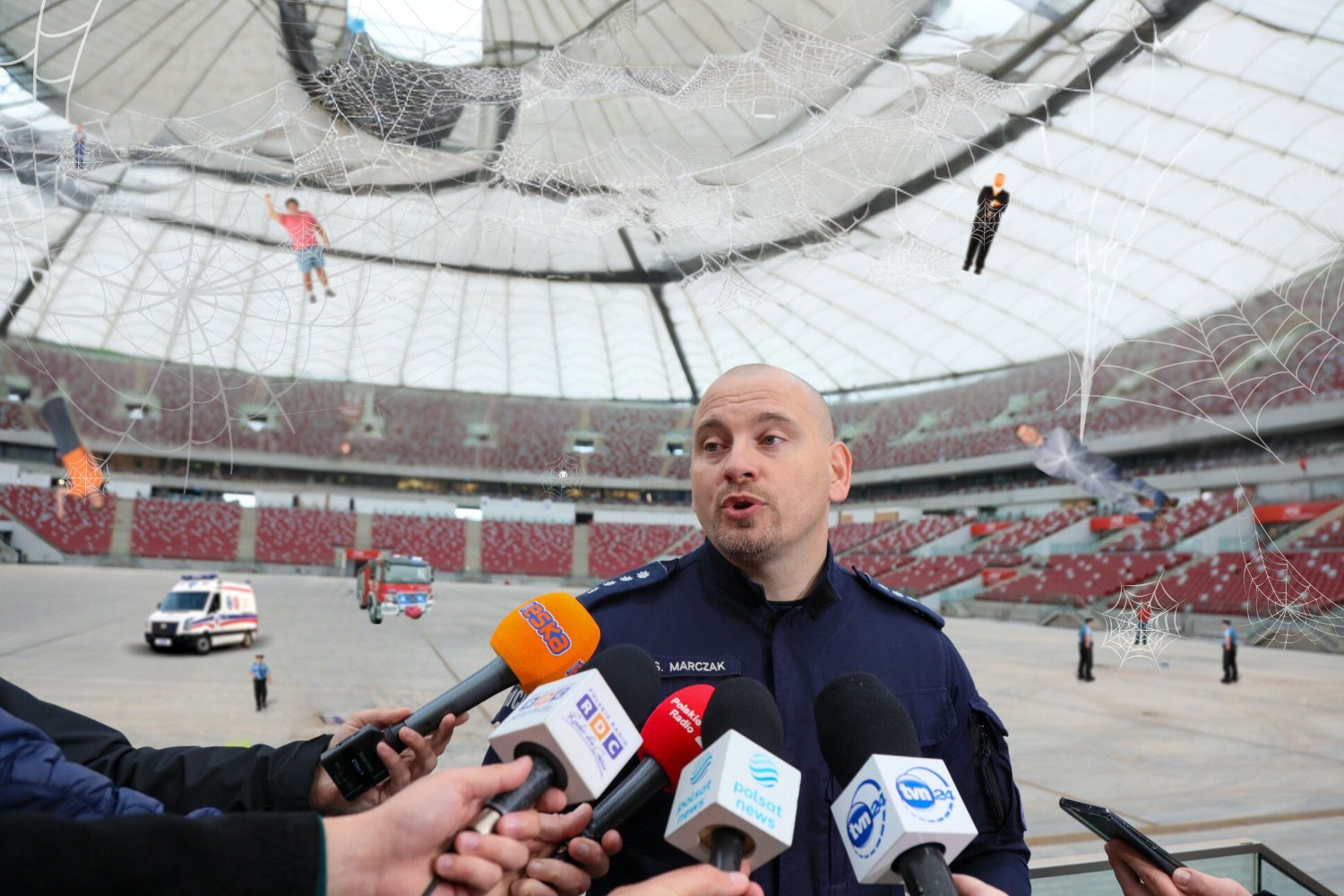 Wczoraj, po spektakularnym koncercie Beyoncé na Stadionie Narodowym odkryto fragmenty olbrzymiej pajęczyny. Sieć rozpościera się pomiędzy sektorem VIP i toaletami, a w jej kleisty uścisk wpadło 37 osób. Jak szybko się okazało, byli to poszukiwani przez policję drobni przestępcy, znani z kradzieży i rozbojów.
