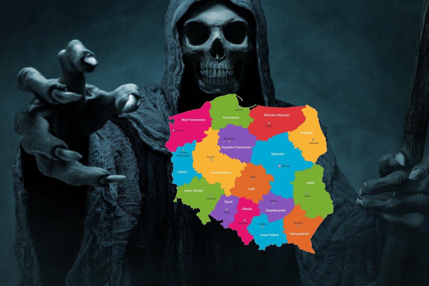 Przedstawiamy listę trzech najczęstszych przyczyn zgonów dla każdego województwa w Polsce.