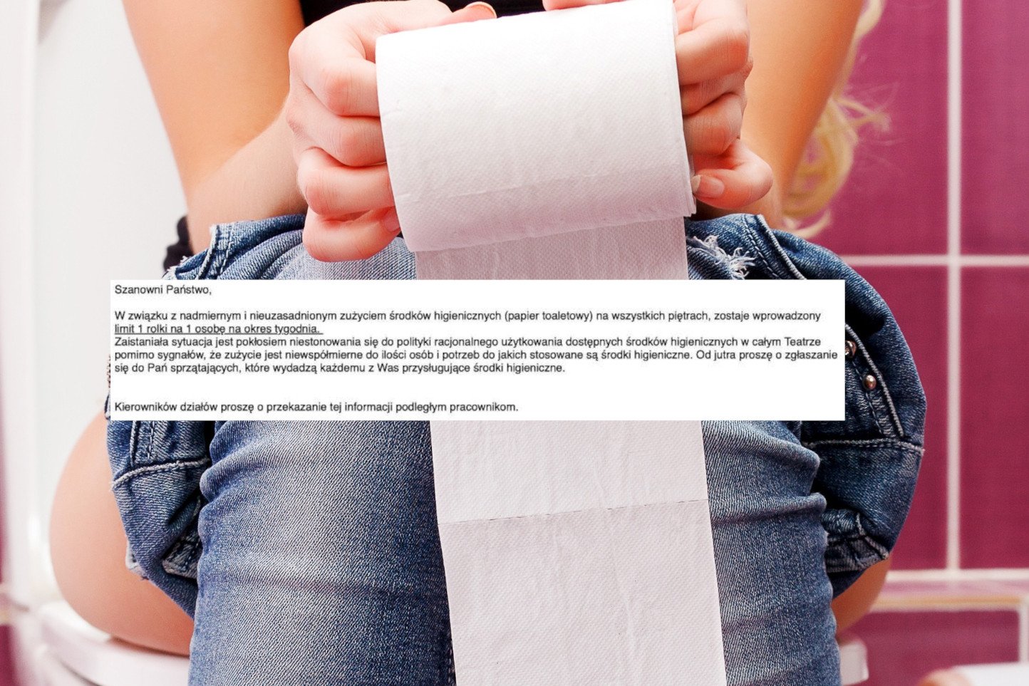 Pracownicy Polskiego Teatru Tańca z Poznania dostali maila z upomnieniem, by nie szarżowali z potrzebami fizjologicznymi. To w końcu miejsce pracy i instytucja kultury.