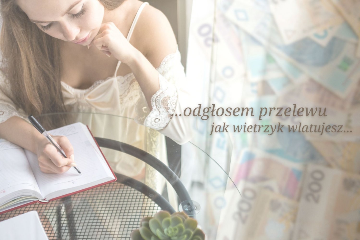 Ćśś, co to? Posłuchaj: czy słyszysz te kroki? To cicho skradają się nieplanowane wydatki, zakupy, wypady na miasto... Jak wybić mam z głowy te chęci niechciane? W zenicie już słońce na nieba sklepieniu, nasz wspólny poranek wraz z tobą przemija. Doceniam, co miałam, i liczę, że wrócisz w kolejnym okresie rozliczeń... ma miła...