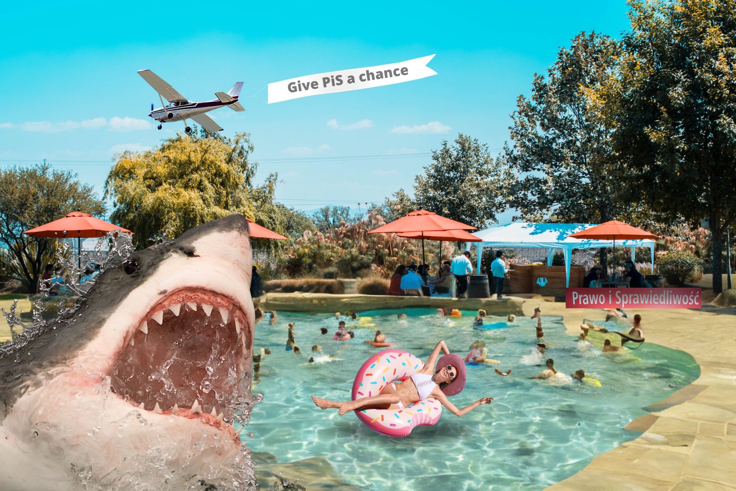 W odpowiedzi na narastające kontrowersje dotyczące bezpieczeństwa i luźnego podejścia do BHP, partia postanowiła zorganizować polityczny miting na odkrytym basenie w Rzeszowie. Atrakcją będą żarłacze białe. Piknik, który odbędzie się w najbliższą sobotę, będzie otwarty dla wszystkich chętnych. Każdy uczestnik dostanie darmową kiełbaskę, napój oraz bekonową opaskę na rękę. Ta ostatnia ma nakłonić żarłacze do wspólnej zabawy. – Chcemy pokazać, że nasza polityka jest tak bezpieczna, jak kąpiel z tymi majestatycznymi stworzeniami – mówi Jacek Sasin, trzymając w ręku dmuchaną piłkę plażową i krem do opalania. – Rekiny nie były karmione przez ostatni tydzień, by się nie roztyły i dobrze prezentowały się na zdjęciach. Opozycja uważa, że rządzący wykorzystują nieświadome zwierzęta do prowadzenia kampanii. Osoby z bliskiego otoczenia Jarosława Kaczyńskiego protestują przed takim stawianiem sprawy. – Oczywiście, że rozmawialiśmy z rekinami i zapewniają nas o pełnej współpracy – zapewnia rzecznik PiS, Radosław Fogiel w kąpielówkach z przekreślonymi flagami Niemiec. – Będą startować z naszych list na Podkarpaciu. Jedyną kością niezgody w Zjednoczonej Prawicy okazał się Janusz Kowalski. Ludojady są przerażone perspektywą tej współpracy i proszą o wypisanie go z list. To jest ASZdziennik. Wszystkie cytaty i wydarzenia zostały zmyślone.