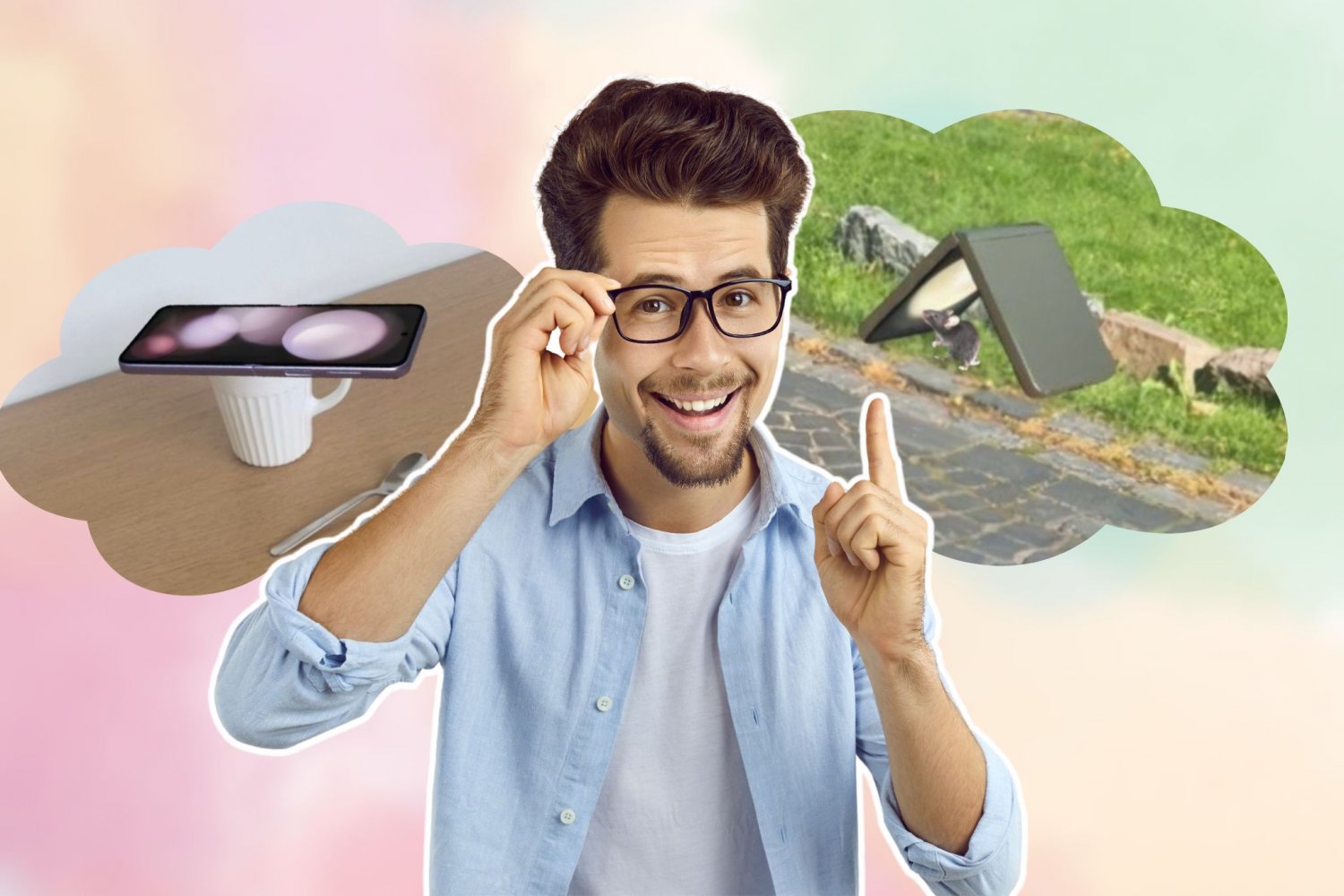 Jeśli w twoim małym, uroczym domku brakuje mebli lub jeśli po prostu chcesz wynieść jego wystrój na wyższy poziom, twój nowy Galaxy Z Flip5 może rozwiązać twoje problemy. Wystarczy, że otwarty Flip oprzesz poziomo na stabilnej podstawie – i voilà! Twoje niby-mieszkanie natychmiast nabrało designerskiej atmosfery.