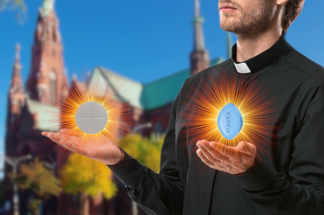 Ksiądz zaprosił do siebie kolegę, innego księdza. Na miejscu najwyraźniej doszło do przyjęcia komunii świętej, ale potem wydarzyło się coś przedziwnego. Po podaniu hostii do ust, opłatek musiał zamienić się w niezwykle silny lek na potencję. Jak bowiem inaczej tłumaczyć fakt, że taka substancja znalazła się w ciele duchownych? Strwożeni księża wezwali na miejsce eksperta - pracownika seksualnego. Co wydarzyło się potem? To chyba wielka tajemnica wiary.