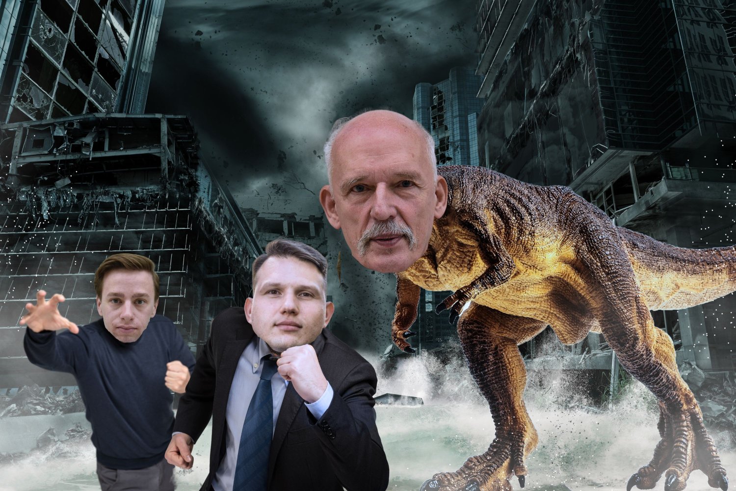Chcieli się bawić w Boga i otrzymają za to karę. Krzysztofowi Bosakowi i Sławomirowi Mentzenowi nie udało się zatrzymać J-Rexa i na tydzień przed wyborami wyrwał się z ich więzienia. Życie zawsze znajdzie sobie drogę.