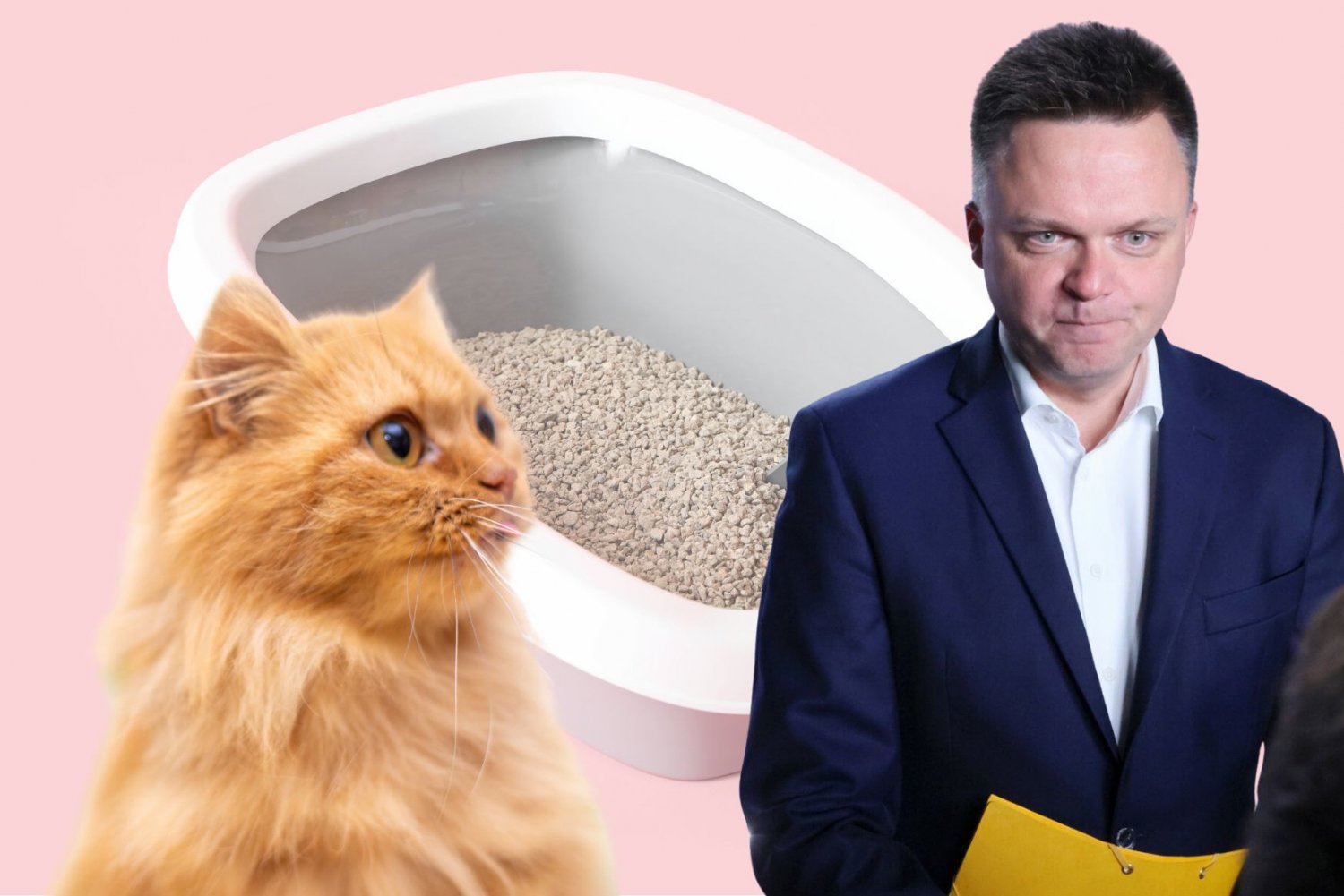 Koty skrzyknęły się przy osiedlowym śmietniku, by zaplanować, jak zmusić Hołownię do spakowania własnej toalety.