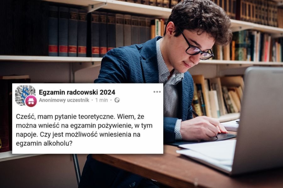 „Mam pytanie teoretyczne. Wiem, że można wnieść na egzamin pożywienie, w tym napoje. Czy jest możliwość wniesienia na egzamin alkoholu?” – zastanawia się dla kolegi anonimowy członek grupy „Egzamin radcowski 2024”.
