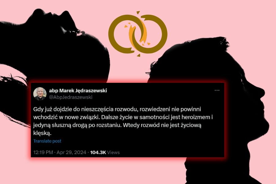 „Gdy już dojdzie do nieszczęścia rozwodu, rozwiedzeni nie powinni wchodzić w nowe związki. Dalsze życie w samotności jest heroizmem i jedyną słuszną drogą po rozstaniu. Wtedy rozwód nie jest życiową klęską” – poucza duchowny na platformie X.