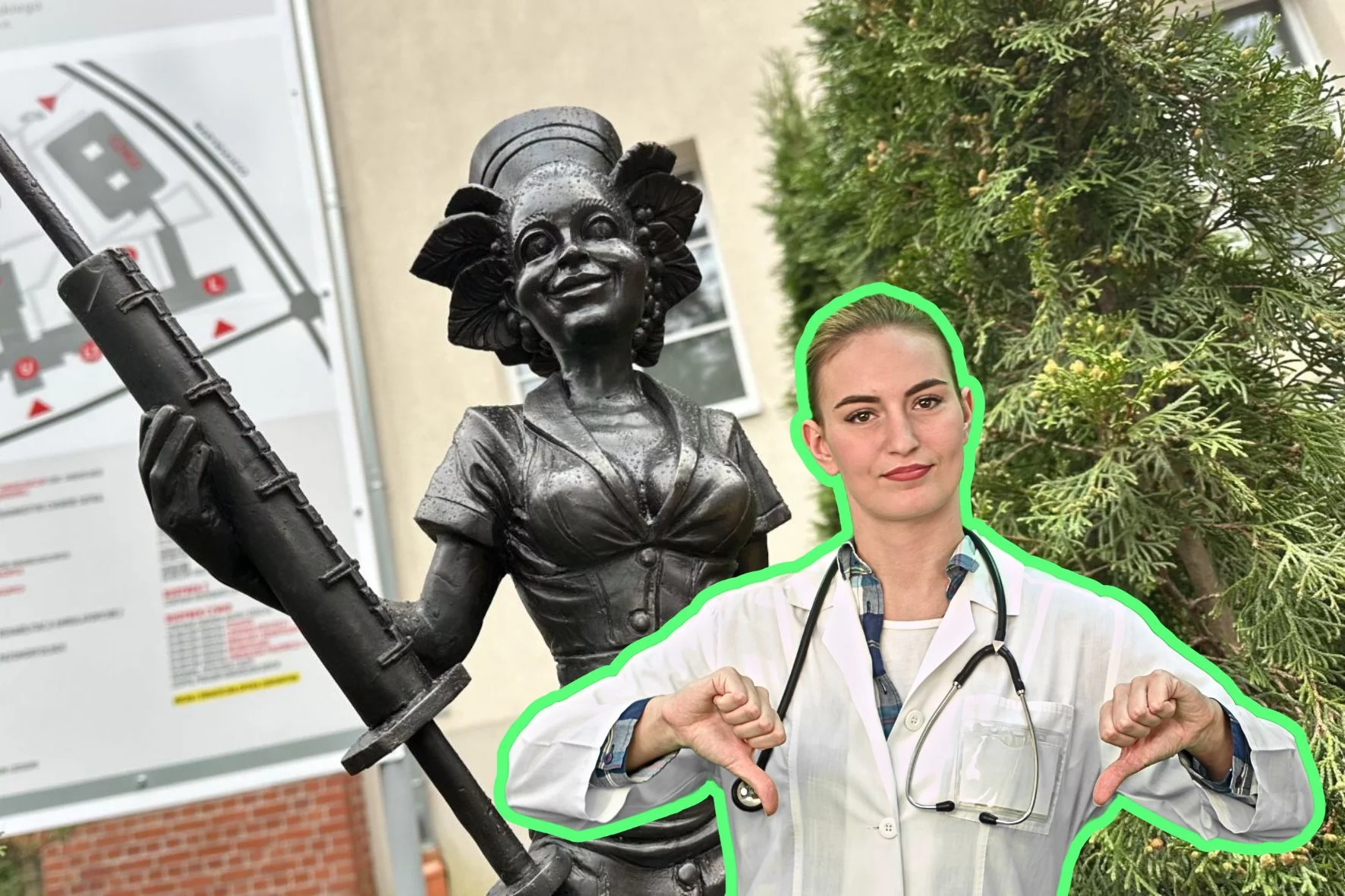 Ktoś chyba pomylił zamówienia, bo na 80-lecie Szpitala Uniwersyteckiego odsłonięto figurkę, która powinna raczej stanąć wewnątrz klubu ze striptizem.