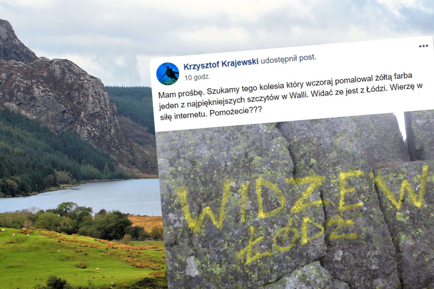 Wojna na murach między kibicami ŁKS-u i Widzewa jest zabawna tylko w Łodzi. Internet poszukuje gnojka, który w parku narodowym w Walii wyraził swoją miłość do futbolu i THC. Żółtą farbą w sprayu na skałach góry Tryfan sprawił, że od dziś będziesz za ŁKS-em.