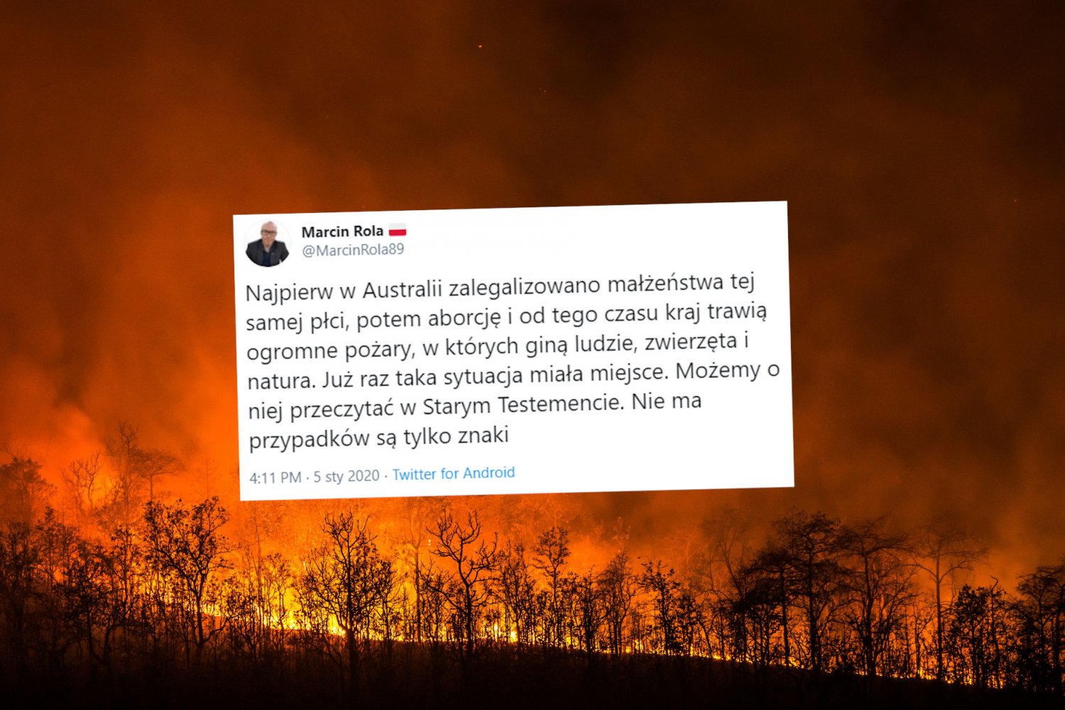 W pożarach lasów Australii zginęło już pół miliarda zwierząt. Rekordy temperatur sprawiają,że walka z żywiołem jest coraz trudniejsza. Ale spokojnie. Gwiazdy polskiej prawicy znalazły już winnych: to geje, ekolodzy i mściwy pan Bóg.