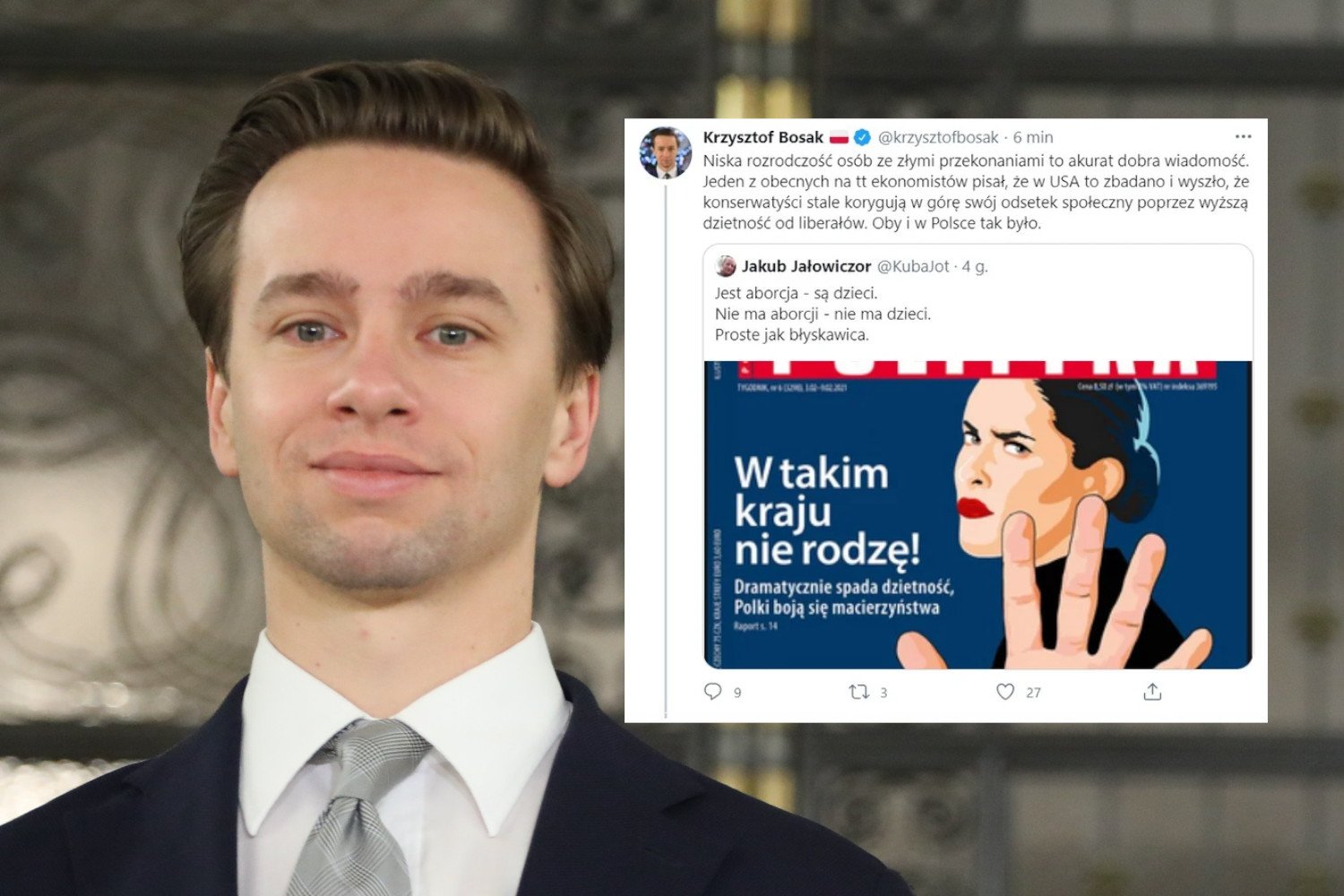 - Niska rozrodczość osób ze złymi przekonaniami to akurat dobra wiadomość – napisał Bosak nawiązując do tekstu tygodnika "Polityka" o spadku dzietności. - Jeden z obecnych na Twitterze ekonomistów pisał, że w USA to zbadano i wyszło, że konserwatyści stale korygują w górę swój odsetek społeczny poprzez wyższą dzietność od liberałów. Oby i w Polsce tak było.
