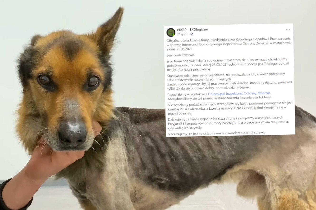 - Jako firma odpowiedzialna społecznie i troszcząca się o los zwierząt, chcielibyśmy poinformować, że pani, której 25.05.2021 odebrano z posesji psa Tołdiego, od dziś nie jest już naszą pracownicą - napisała firma PROiP - EKOlogiczni.