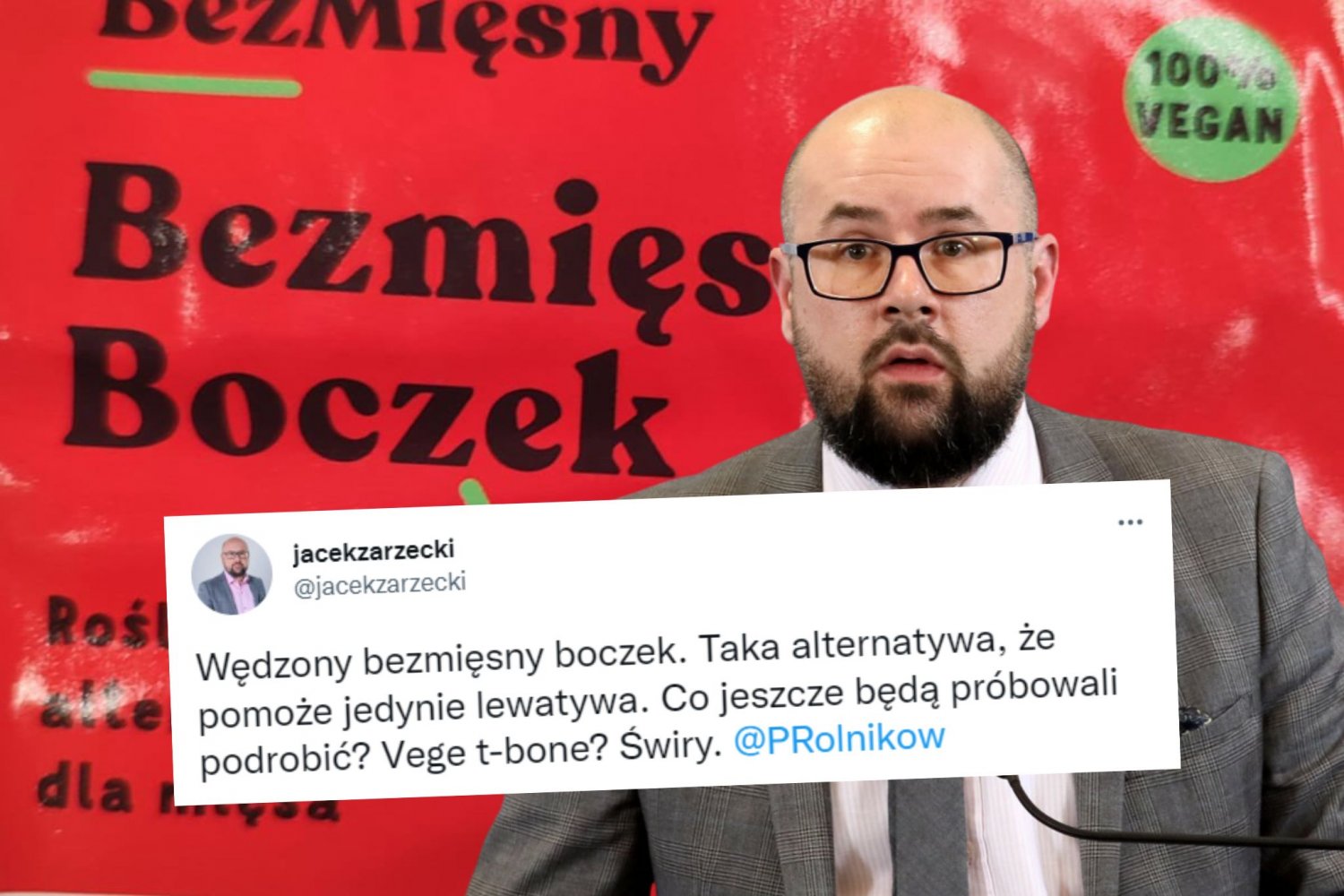 Dla jasności (jak wyjaśnia w komentarzach pod swoim tweetem): problemem nie jest dla niego spadek konsumpcji mięsa, istnienie wegetarian i wegan (CHOĆ TO ŚWIRY!!!), ale kwestie etyczne związane z nazewnictwem.
